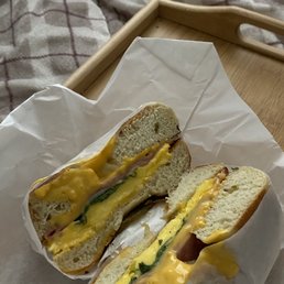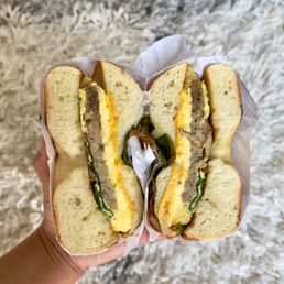 Walked in and the line was out the door! However, it moved very smoothly and the workers were very efficient with taking orders and ringing up. This is a quick service bagel, coffee and sandwich spot that also serves boba! The vibes were very community friendly and people inside seemed to know each other. I had the sausage, egg & cheese croissant sandwich and it was delicious! The bread was so soft and the ingredients all worked well together. I took some bagels home along with cream cheese so I will be having those this weekend. Definitely will be back!