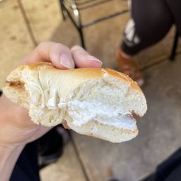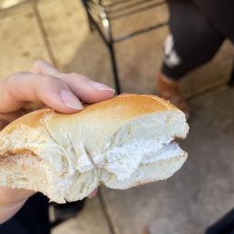 This such a good bagel spot! They have so many options and everything was fresh! I also saw that they have one day old bagel bags and it was such a good deal! So many bagel options. Huge parking lot! I recommend the jalapeño bagel, it's actually spicy but really delicious! The service was really fast too. We'll definitely be coming here again for our bagels! *they charge a fee for credit and debit cards