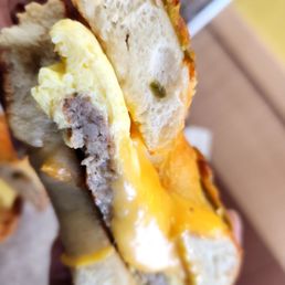 Good came out really fast and hot. They individually wrap each half, which was nice since I only ate half of mine and could keep the other half wrapped. Thick sausage pieces with great seasoning to it. Jalapeño bagels was really good. Super soft inside and not tough. Cheese was gooey. The service was fast but they don't have a ton of patience. They are definitely in the get stuff done mode to keep things moving.